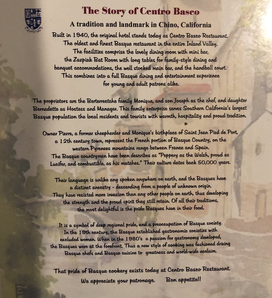 Centro Basco, a French venue located in Chino, CA, offers a wide range of shareables, sandwiches, burgers, and a la carte options. From Bacon wrapped jalapeno poppers to Garlic Lime Shrimp Skewers, this restaurant caters to a variety of tastes. Customer reviews rave about the amazing escargot and delectable pork chops, highlighting the warm ambiance and impeccable service. The menu includes vegan and vegetarian options, making it a great choice for all dietary preferences. Centro Basco is not only a place for delicious meals but also a venue for creating cherished memories with loved ones. With its family-owned atmosphere and mouth-watering cuisine, Centro Basco is a hidden gem that deserves more recognition. Don't miss out on trying their home-cooked dishes, like the ox tail stew or the New York steak cooked to perfection. Experience the warmth and flavors of Basque cuisine at Centro Basco.
